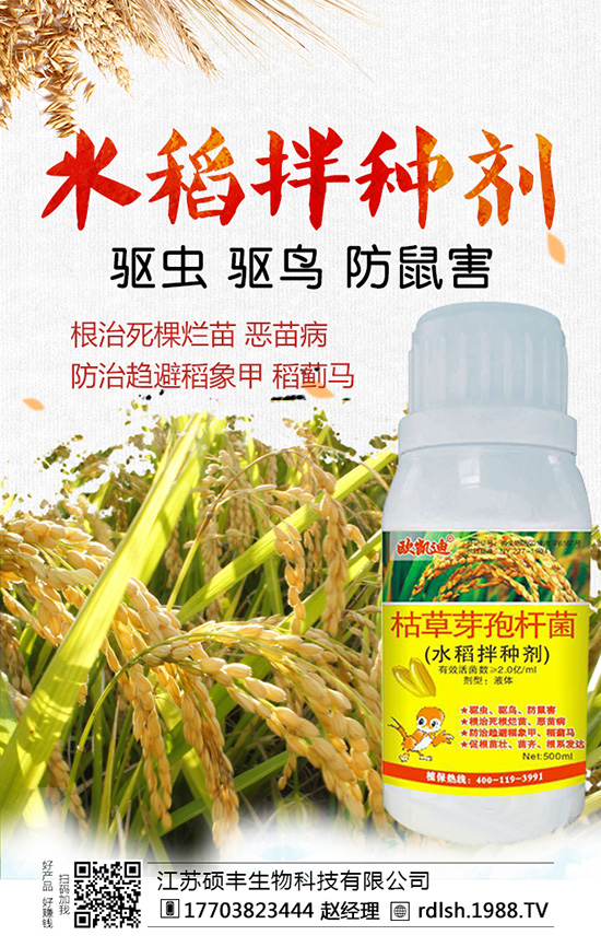 6、苗床土壤消毒用3.2惡甲水劑300倍液噴灑,用廣滅靈水劑浸種24-48 h或于1葉1心期噴灑500~1000倍液。水稻秧苗1葉1心期,每盤(pán)用15%立枯靈液劑0.9 g加水1 L噴灑。用70%敵克松粉劑500倍液或1%硫酸銨進(jìn)行噴霧,并注意保持床土濕度,以有效防止立枯病的危害。在秧苗發(fā)病初期,施立枯清每平方米用藥1~1.5 g,對(duì)水均勻噴在苗床上。
