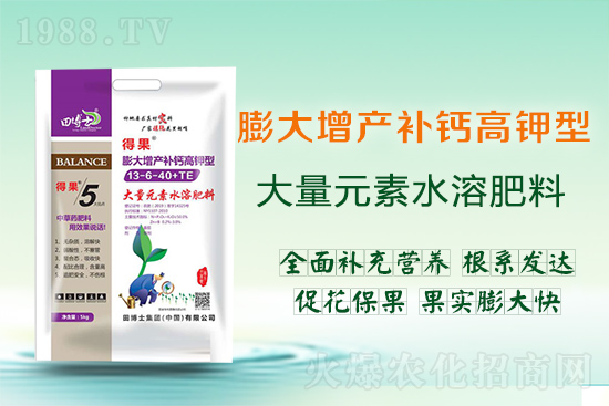 田博士集團(tuán)有限公司【膨大增產(chǎn)補(bǔ)鈣高鉀型大量元素水溶肥料13-6-40+TE-得果】優(yōu)勢