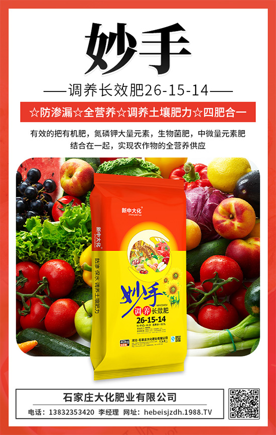 妙手調(diào)養(yǎng)長效肥,多種作物都能用,比同樣含量摻混肥控釋肥價(jià)格低,有賣點(diǎn),利潤高,農(nóng)民說好,經(jīng)銷商賺錢多的好產(chǎn)品,值得你關(guān)注。