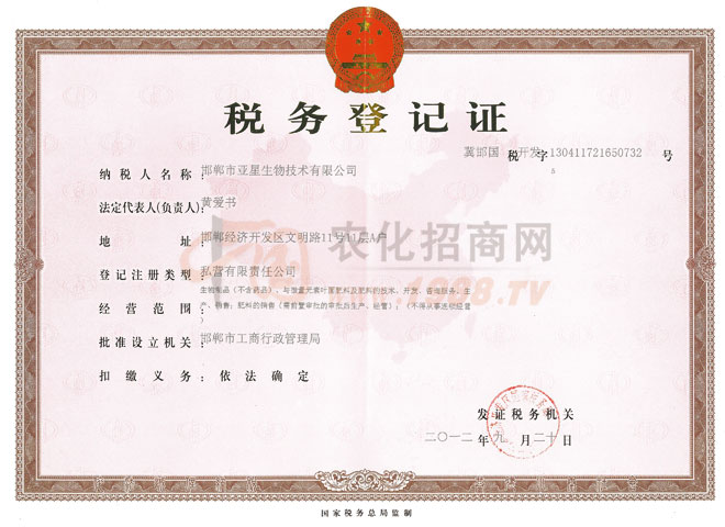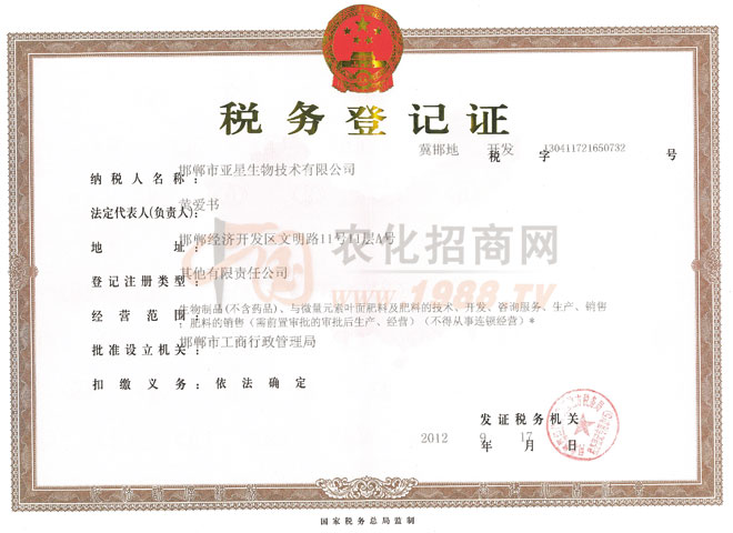證書(shū)名稱(chēng):稅務(wù)登記證 發(fā)證機(jī)構(gòu):邯鄲市工商行政管理局