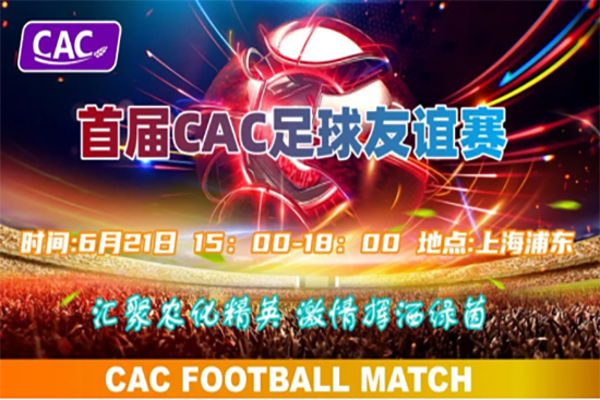 為了讓大家在參會之余放松身心,鍛煉身體,享受足球帶來的獨(dú)特魅力,主辦方將于6月21日(展會前一天)在魔都上!肿闱蚬珗@舉辦首屆CAC足球友誼賽。